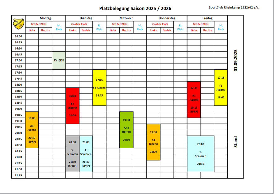 Platzbelegung Saison 2025 / 2026